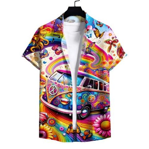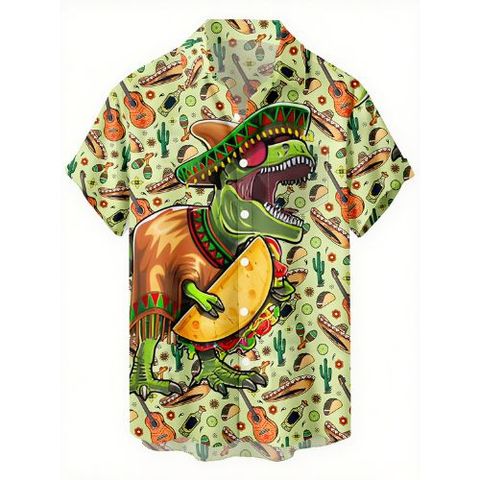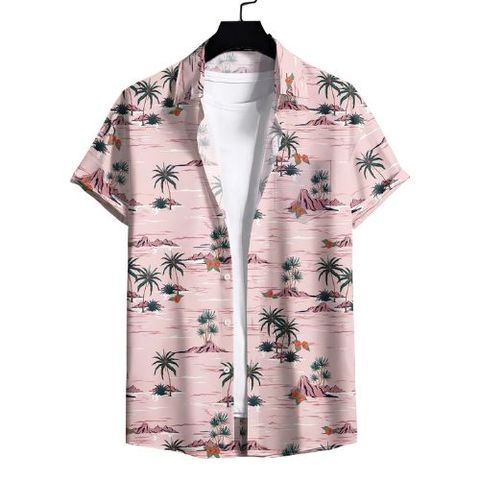 Hombres 100% Poliéster Transpirable Impreso Ecológico Hawaiano Manga Corta Botón-Up Casual Viajes Vacaciones Vintage Servicio OEM
