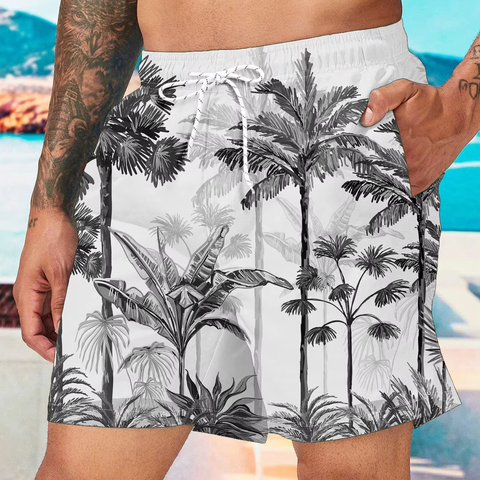 Pantalones cortos hawaianos informales de secado rápido para hombre, pantalones cortos con estampado de palmeras tropicales para uso en piscina y playa