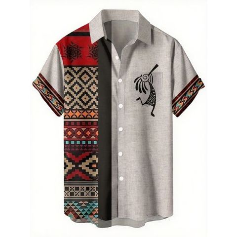 Camisas hawaianas estampadas de un solo pecho para hombre, estilo tribal, manga corta, tela satinada transpirable ecológica, servicio informal OEM