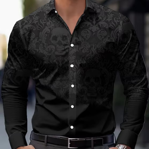 Otoño Invierno estilo Vintage camisa de negocios de manga larga para hombres Casual ropa de oficina solapas impreso uniforme negro antiarrugas
