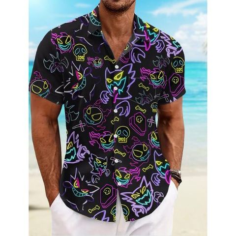 Ropa de calle informal transpirable para hombre, camisa tejida de satén con estampado de diablo Hawaiano de manga corta, servicio OEM de retazos